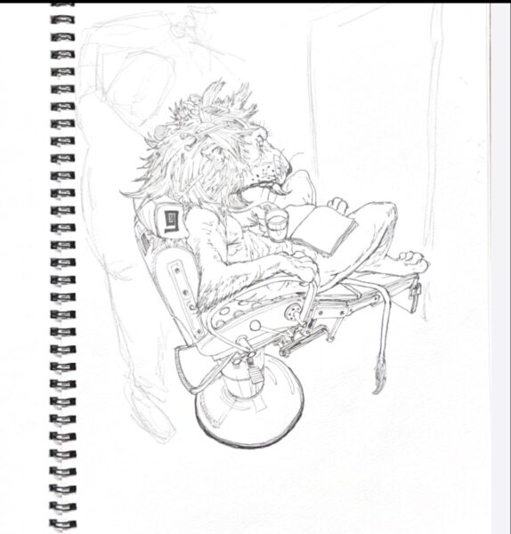 途中まで紙にペンで絵を描き、それをスキャンして iPadで色付けしてみました。